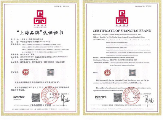Intertek为老字号雷允上药业颁发“上海品牌”认证证书