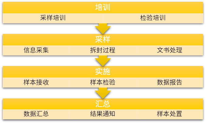 项目实施前分别进行采样和检验的集中培训,熟悉相关法律法规、工作纪律,了解实施方案、项目要求,并进行有效性评估。