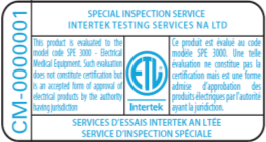 ![]() ETL加拿大特殊检验标签 SPE-3000(电气类医疗产品设设备) |