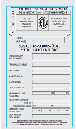 ![]() ETL加拿大特殊检验标签 CSA B149.3(燃气类产品和设备) |