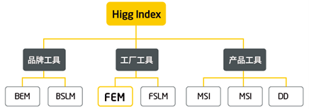 - Higg FEM(Facility Environment Modules)关注工厂的环境管理绩效,可以对工厂的环境管理绩效进行可标准化的评估和量化。