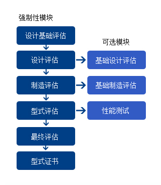 - 必选模块:型式试验;最终评估;获证后监督。