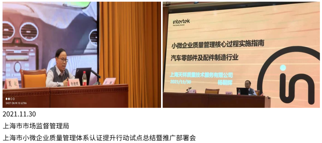 上海市小微企业质量管理体系认证提升行动试点总结暨推广部署会隆重举行,Intertek中国市场事业部资深专家杨朝辉受邀出席,并针对汽车零部件及配件制造行业发表主题演讲《小微企业质量管理核心过程实施指南(汽车零部件及配件制造行业)》。